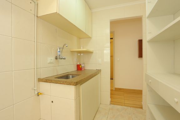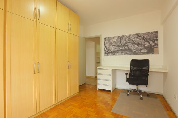 Não é mobiliado, porém oferece ótimos armários em todos os ambientes, bancada de escritório e cortinas instaladas, garantindo praticidade imediata para o dia a dia. A unidade está em perfeito estado de conservação, com pintura recém-feita e piso de madeira com sinteco seminovo, além de áreas molhadas revestidas em cerâmica. Possui ainda vaga de garagem.
