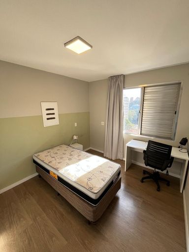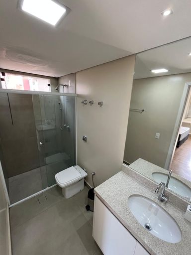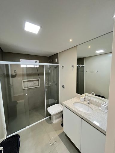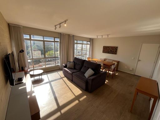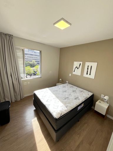 Este apartamento possui 166 m² de área útil, em um edifício ensolarado e bem localizado. Conta com 3 quartos, sendo 1 suíte, além de 1 banheiro social e 1 lavabo. Os quartos estão equipados com camas box, armários embutidos, ar-condicionado, mesas e bancadas de apoio. A sala de estar e jantar é bastante iluminada, proporcionando um ambiente confortável e acolhedor. O imóvel dispõe de móveis embutidos e uma Smart TV.